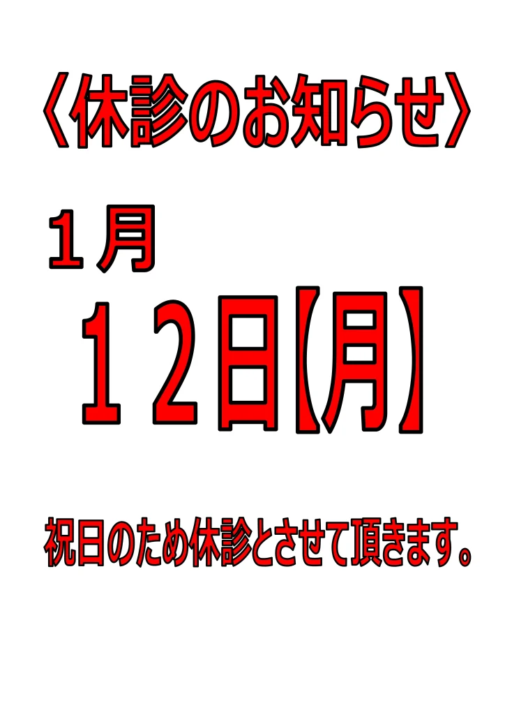 1月12日(月)は成人の日のため休診です。